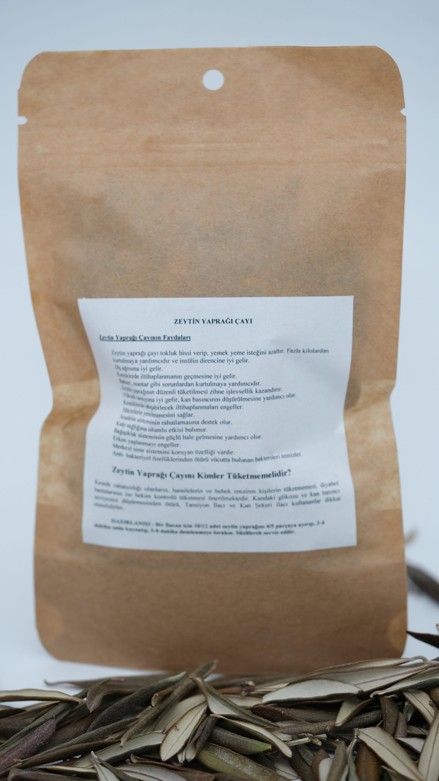 HAZIRLANIŞI : Bir fincan için 10/12 adet zeytin yaprağını 4/5 parçaya ayırıp, 3-4 dakika suda kaynatıp, 5-8 dakika demlenmeye bırakın. Süzülerek servis edilir.